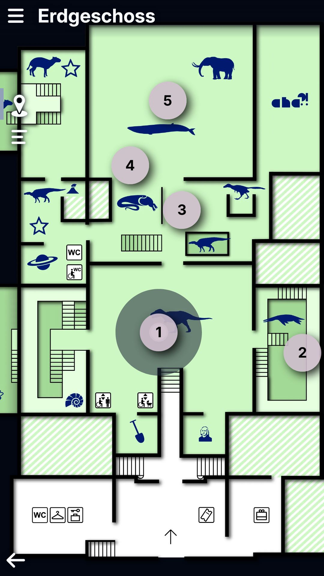 Über den Grundriss der Karte lässt sich optimal navigieren: die Position des aktuellen Beitrags wird stets angezeigt. Unterstützt wird die Orientierung zusätzlich durch Fotografien, die den Weg durch die Ausstellung zeigen.