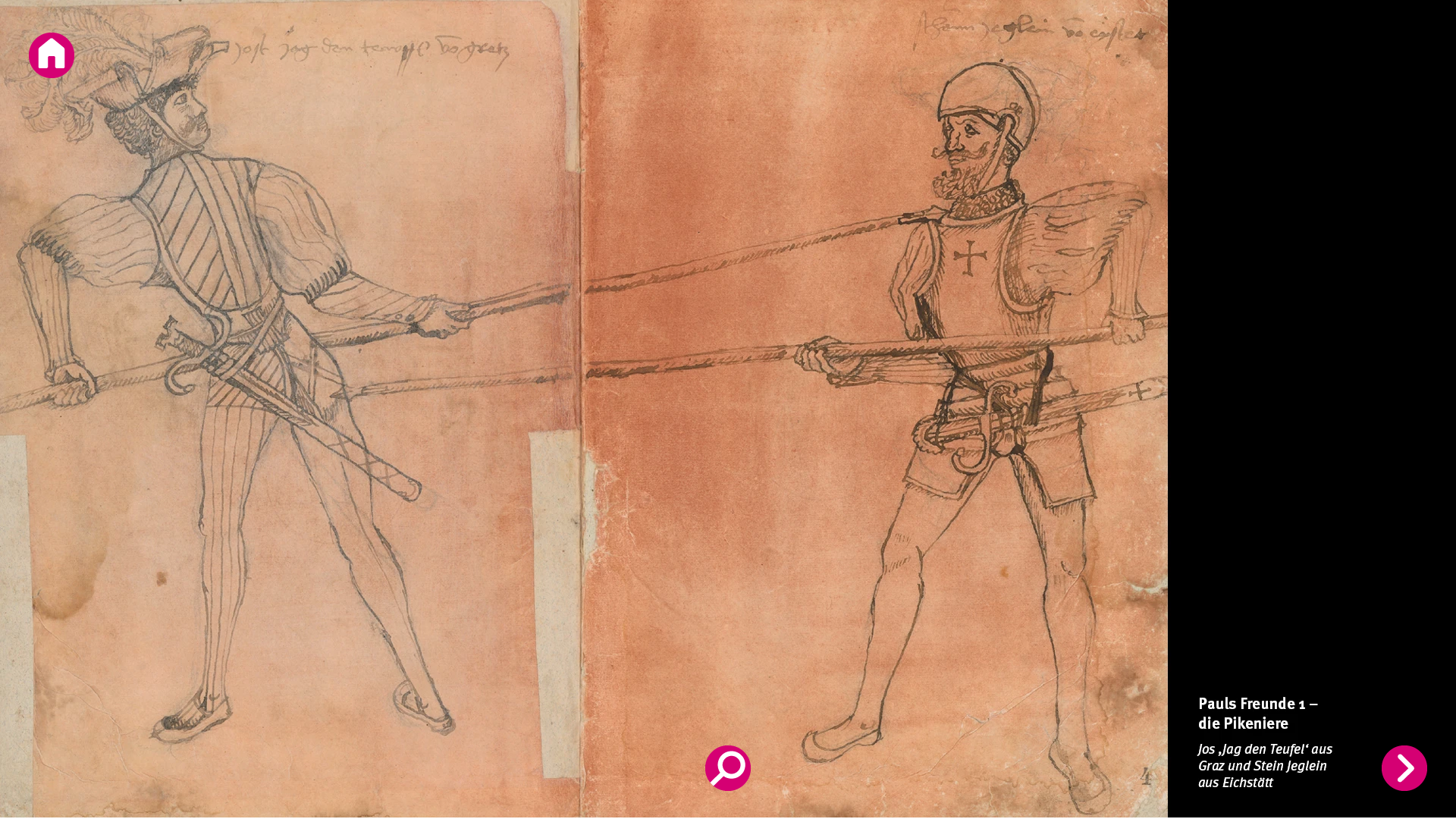 Lebensgroße KI-generierte Figuren lassen die Menschen aus den Bauernkriegen in einer unseren heutigen ästhetischen Sehgewohnheiten entsprechenden Weise erscheinen. Dadurch bekommt die Vermittlung der geschichtlichen Inhalte eine neue Aktualität.